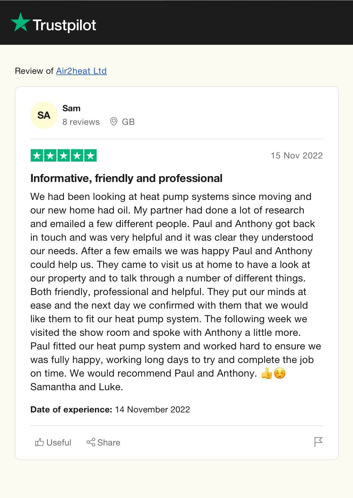 Farr and Harris as the Sustainable Home Centre played a positive proactive role in this project not only with the warm welcome given to Sam and Luke when they arrived at the showroom but the professional advice provided for them during their visit. In addition, with pre-installation site visits, logistics and a site visit on completion of the installation. It is their aim to ensure the project becomes a success for the Client too so ultimately we are all seeking the same goal to ensure a smooth project with a great success story. ✅
