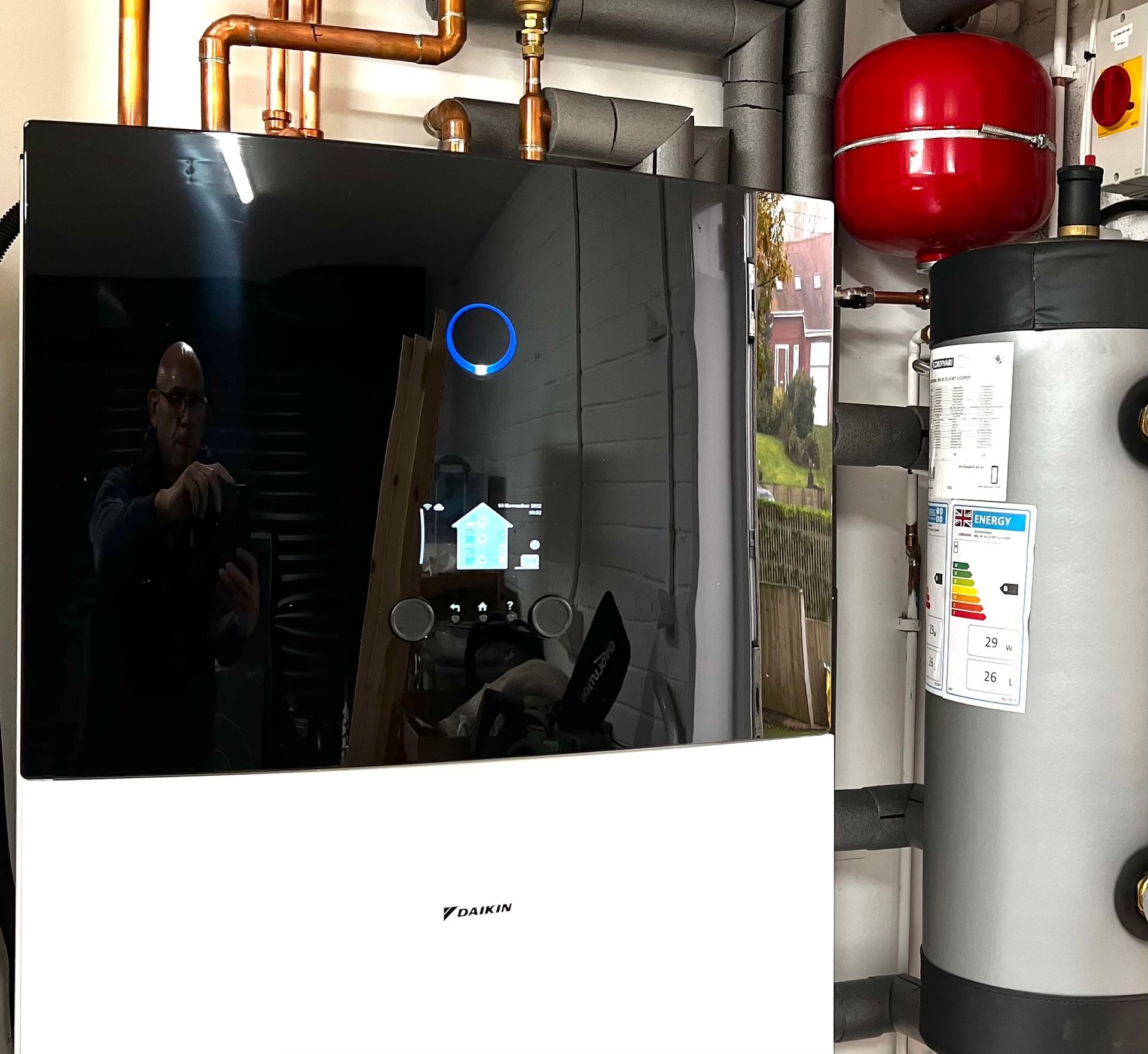 Initially I had conducted a Home Survey to determine the Heat Loss Calculation, the suitability for the proposed system and to obtain a visual perspective of how the system equipment could be installed within the property. As it was determined that a High Temperature unit was better suited to the property and also offered a higher SCOP I then suggested to Luke and Sam to view the proposed equipment at the Sustainable Home Centre for Shropshire. The Daikin SHC for Shropshire is Farr and Harris and is managed by a very professional and extremely helpful Gentleman named Anthony. I had assured Luke and Sam that if they visited the Centre they would have the opportunity to see the High Temp units in the Showroom which would give them a better idea of how the equipment would look in their home and in addition the would be able to ask Anthony any questions they may have regarding the equipment. They visited a day or two later.